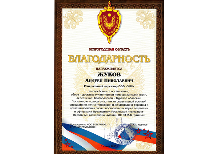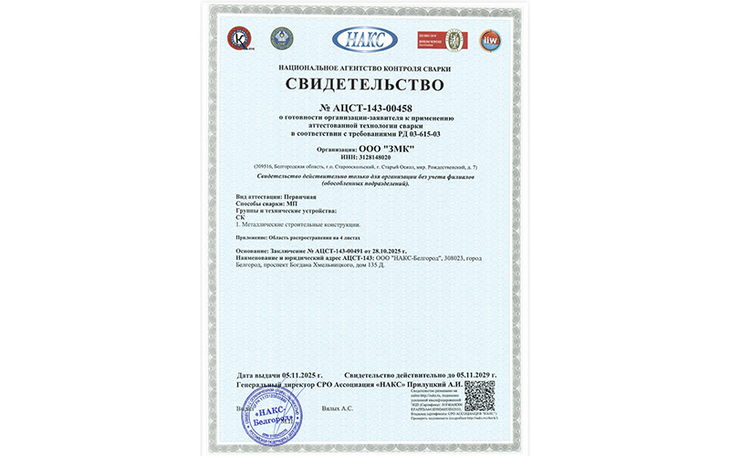 Завод металлоконструкций официально принят в члены Ассоциации (СРО) «Строители Белгородской области».